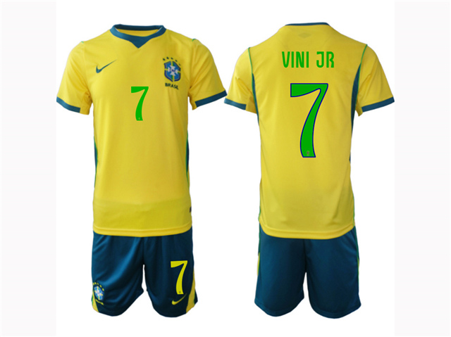 Brazil 2026 Home Gold Soccer Jersey with #7 Vini Jr. Printing