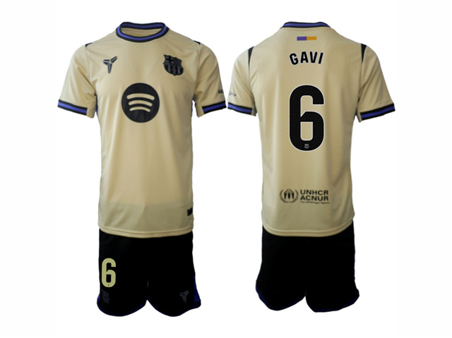 FC Barcelona 2025/26 Away Gold Soccer Jersey with #6 Gavi Printing