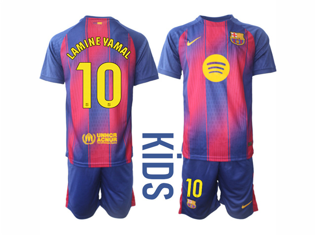 FC Barcelona 2025/26 Home Youth Red/Blue Soccer Jersey with #10 Lamine Yamal Printing