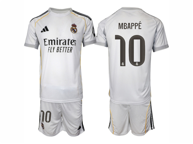 > Real Madrid CF 2025/26 Home White Soccer Jersey with #10 Mbappé Printing