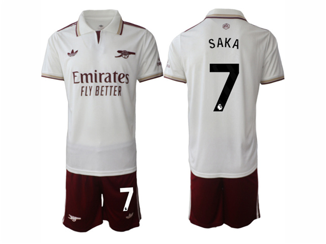 > Arsenal F.C. 2025/26 Third White Soccer Jersey with #7 Saka Printing