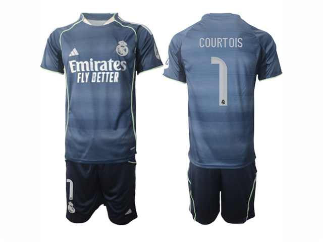 > Real Madrid CF 2025/26 Away Navy Soccer Jersey with #1 Courtois Printing