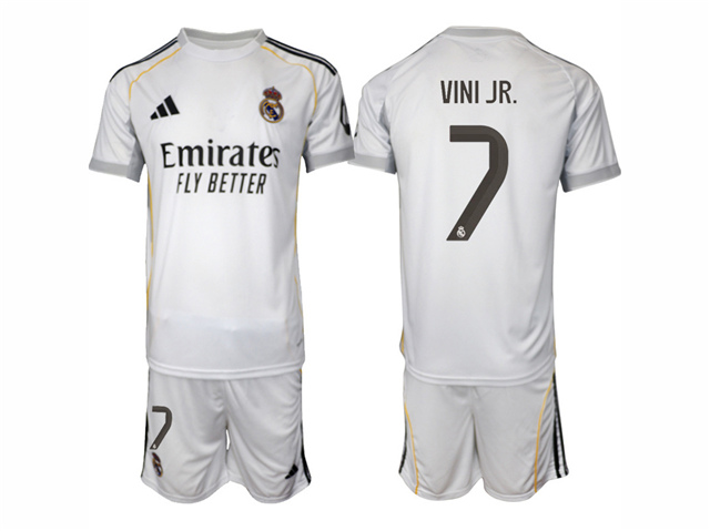 > Real Madrid CF 2025/26 Home White Soccer Jersey with #7 Vini Jr. Printing