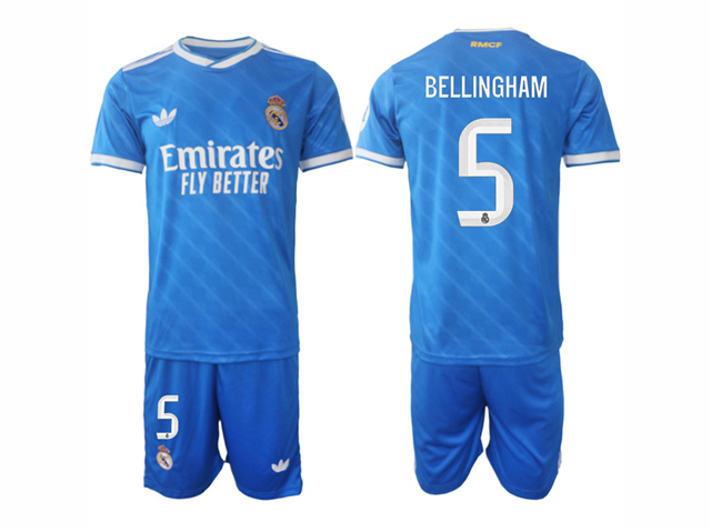 Real Madrid CF 2025/26 Third Blue Soccer Jersey with #5 Bellingham Printing
