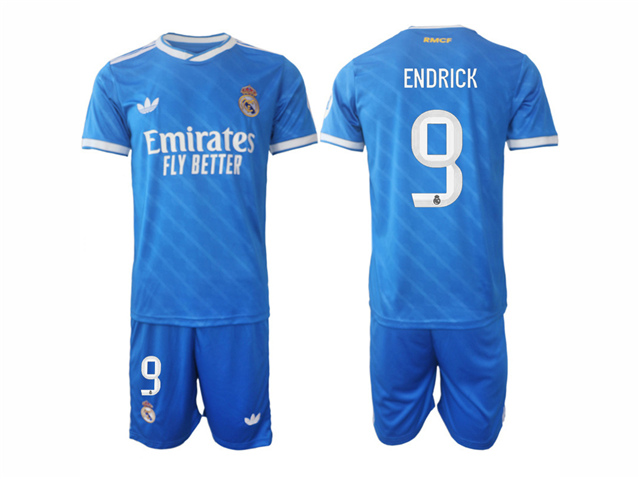 > Real Madrid CF 2025/26 Third Blue Soccer Jersey with #9 Endrick Printing