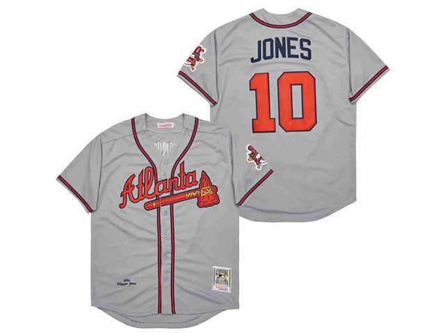 > Atlanta Braves #10 Chipper Jones 1995 Gray Throwback Jersey
