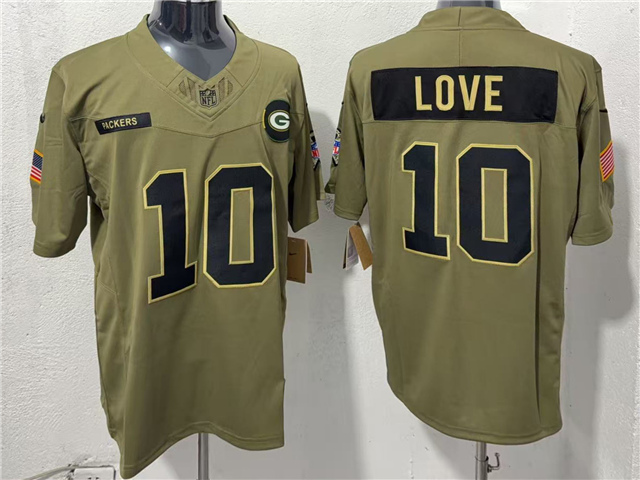Green Bay Packers #10 Jordan Love Olive 2025 Salute To Service Limited Jersey
