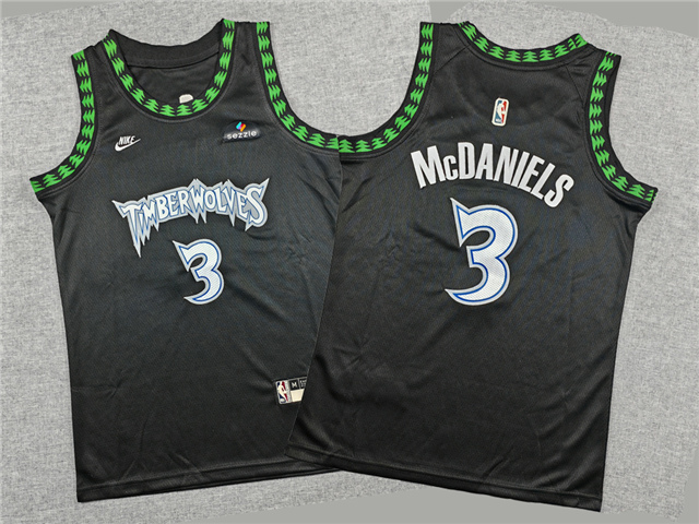 > Minnesota Timberwolves #3 Jaden McDaniels Youth 2025-26 Black Classic Swingman Jersey