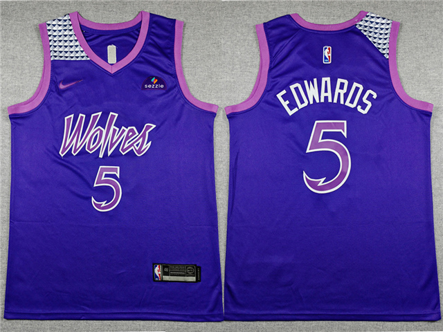 > Minnesota Timberwolves #5 Anthony Edwards 2025-26 Deep Purple City Edition Swingman Jersey