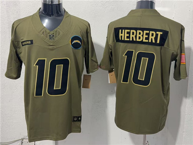 > Los Angeles Chargers #10 Justin Herbert Olive 2025 Salute To Service Limited Jersey
