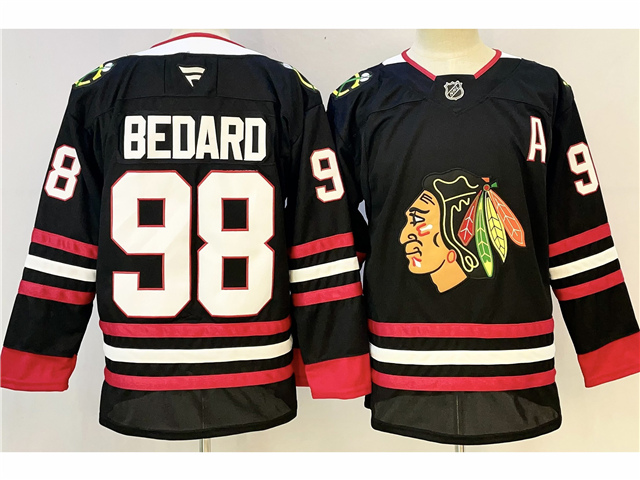 > Chicago Blackhawks #98 Connor Bedard Third Black Jersey