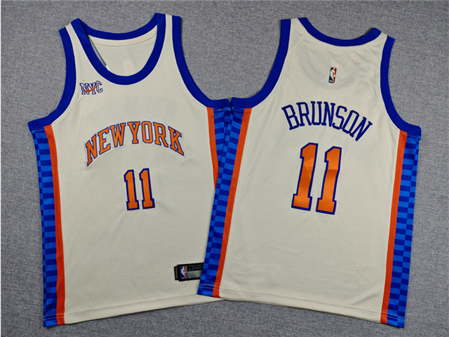> New York Knicks #11 Jalen Brunson Youth 2025-26 Cream City Edition Swingman Jersey