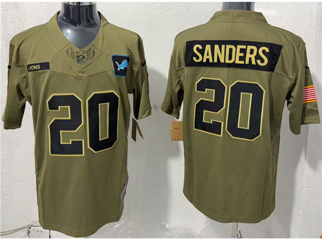 > Detroit Lions #20 Barry Sanders Olive 2025 Salute To Service Limited Jersey