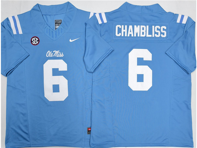 > Ole Miss Rebels #6 Trinidad Chambliss Light Blue College Football F.U.S.E. Limited Jersey