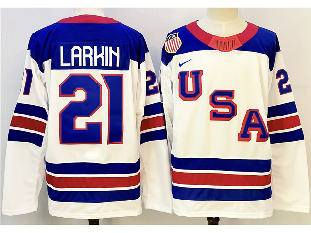 > 2026 Winter Olympics Team USA #21 Dylan Larkin White Hockey Jersey