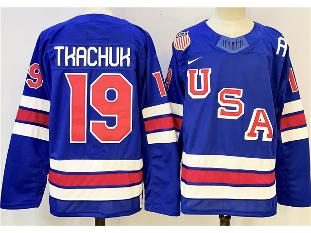 > 2026 Winter Olympics Team USA #19 Matthew Tkachuk Blue Hockey Jersey