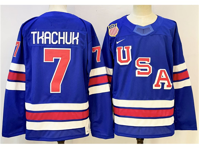 > 2026 Winter Olympics Team USA #7 Brady Tkachuk Blue Hockey Jersey