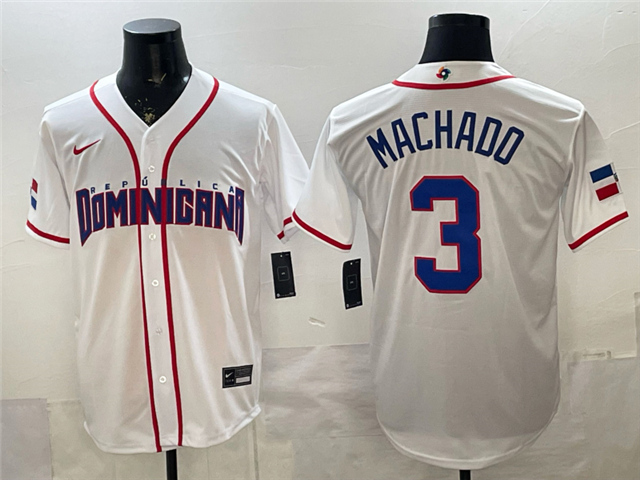 > Dominican Republic #3 Manny Machado Baseball White 2026 World Baseball Classic Jersey