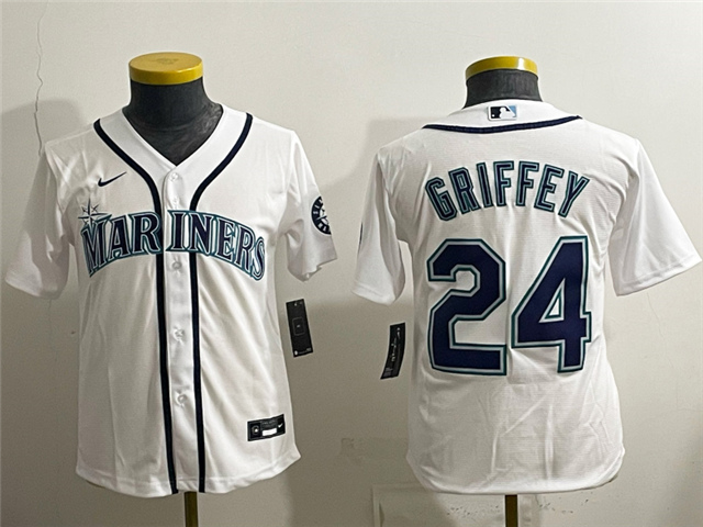 > Seattle Mariners #24 Ken Griffey Youth White Limited Jersey