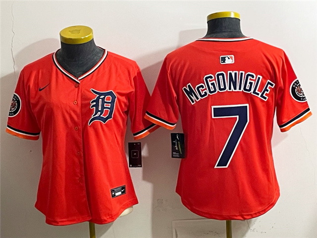 > Detroit Tigers #7 Kevin McGonigle Orange Women's Limited Team Jersey