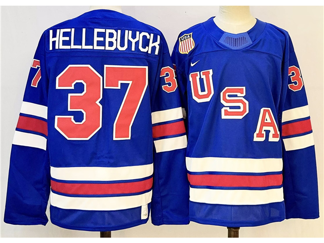 > 2026 Winter Olympics Team USA #37 Connor Hellebuyck Blue Hockey Jersey