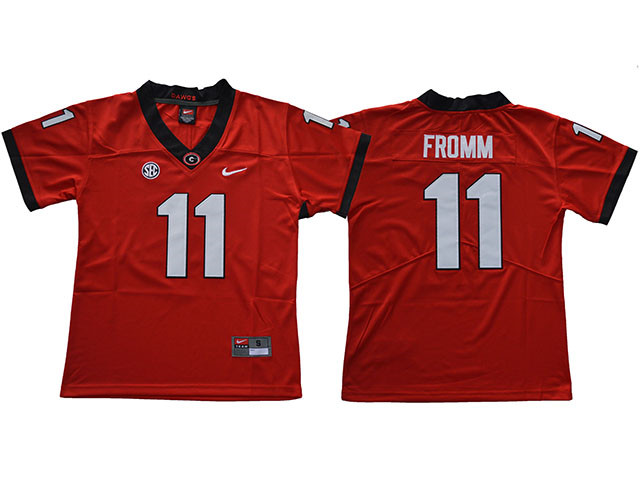 Georgia Bulldogs #11 Jake Fromm Youth Red College Football Jersey