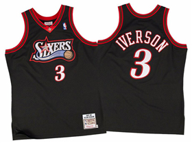 > Philadelphia 76ers #3 Allen Iverson 1997-98 Black Hardwood Classics Jersey