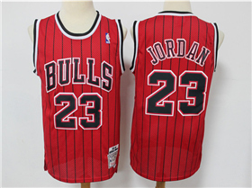 > Chicago Bulls #23 Michael Jordan Red Pinstripe Hardwood Classics Jersey