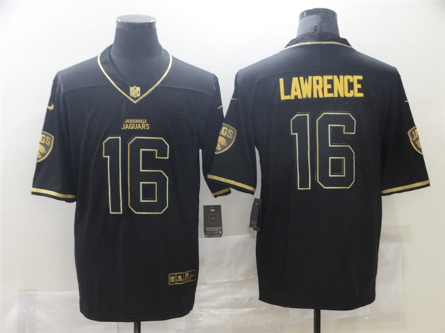Jacksonville Jaguars #16 Trevor Lawrence Black Gold Vapor Limited Jersey