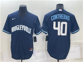 > Chicago Cubs #40 Willson Contreras Navy 2021 City Connect Cool Base Jersey