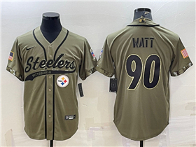 Pittsburgh Steelers #90 T.J. Watt Olive Salute To Service Baseball Jersey