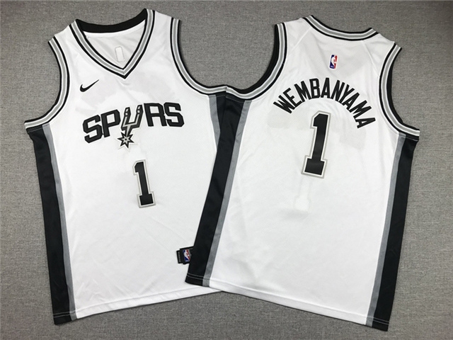 > San Antonio Spurs #1 Victor Wembanyama Youth White Swingman Jersey