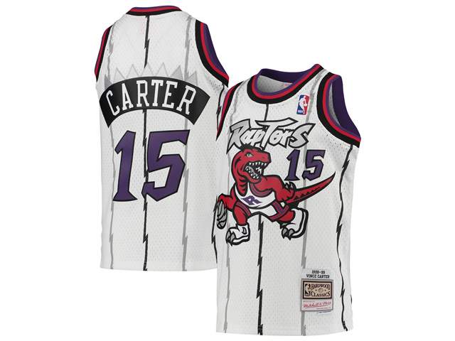 > Toronto Raptors #15 Vince Carter Youth 1998-99 White Hardwood Classics Jersey