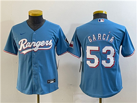 Texas Rangers #53 Adolis Garcia Youth Light Blue Cool Base Jersey
