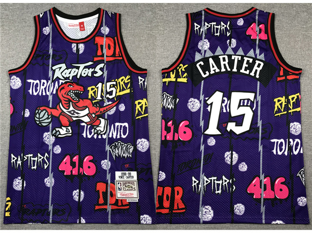 Toronto Raptors #15 Vince Carter Purple Graffiti Hardwood Classics Jersey