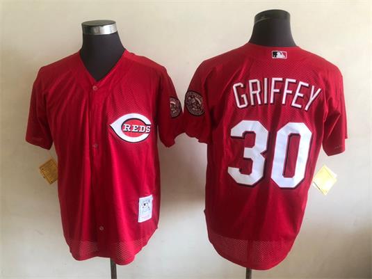 > Cincinnati Reds #30 Ken Griffey Jr. Throwback Red Jersey