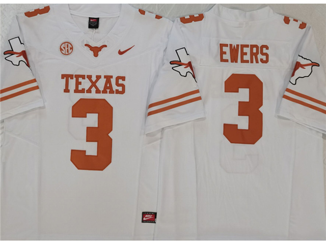 > Texas Longhorns #3 Quinn Ewers White College Football F.U.S.E. Limited Jersey