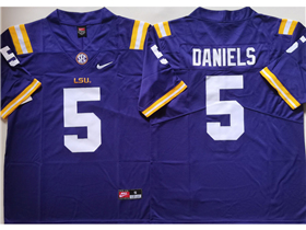 > LSU Tigers #5 Jayden Daniels Purple College Football Jersey