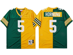 > Green Bay Packers #5 Paul Hornung 1961 Throwback Split Green/Gold Jersey