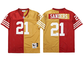 > San Francisco 49ers #21 Deion Sanders Throwback Split Red/Gold Jersey