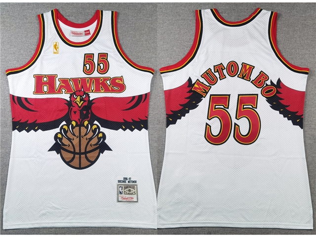 > Atlanta Hawks #55 Dikembe Mutombo White Hardwood Classics Jersey