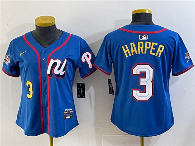 > National League #3 Bryce Harper Women's Blue 2025 MLB All-Star Limited Jersey