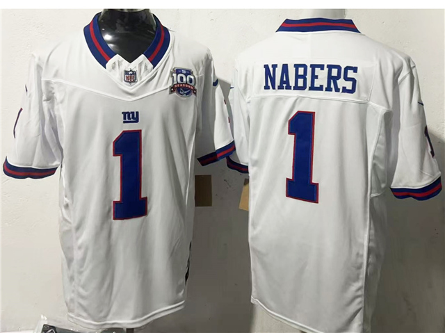 > New York Giants #1 Malik Nabers White Color Rush Vapor F.U.S.E. Limited Jersey