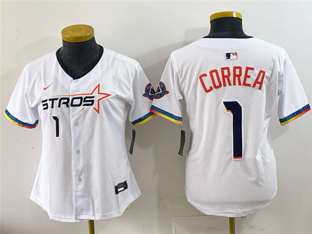 > Houston Astros #1 Carlos Correa Women's White 2025 City Connect Limited Jersey
