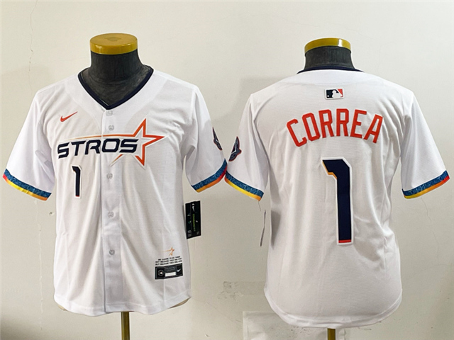 > Houston Astros #1 Carlos Correa Youth White 2025 City Connect Limited Jersey