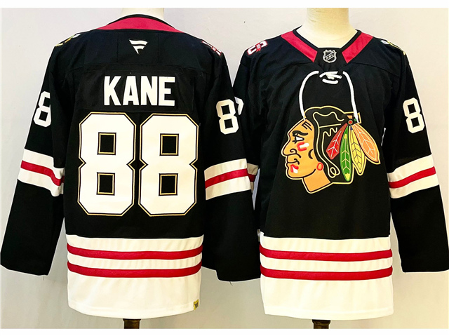 > Chicago Blackhawks #88 Patrick Kane 2025 Black 100th Anniversary Jersey