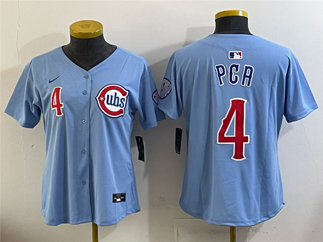 > Chicago Cubs #4 PCA Women's 2025 Light Blue City Connect Limited Jersey
