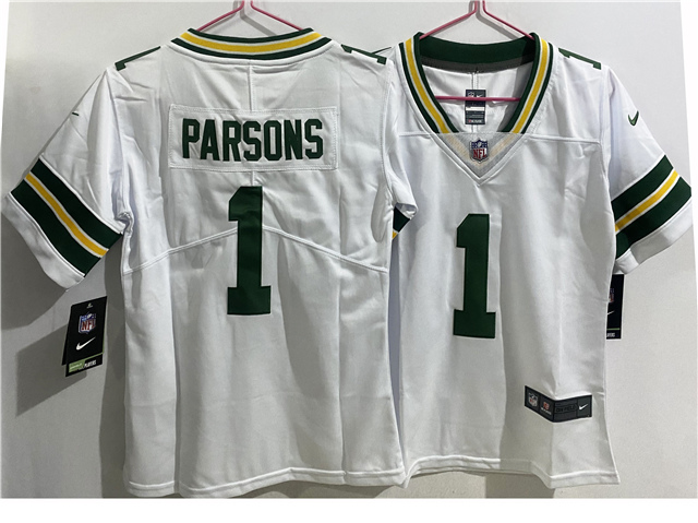 > Green Bay Packers #1 Micah Parsons Youth White Vapor Limited Jersey