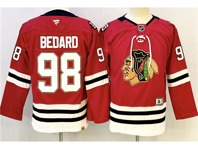 > Chicago Blackhawks #98 Connor Bedard Youth 2025 Red 100th Anniversary Jersey