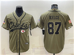 Kansas City Chiefs #87 Travis Kelce Olive Salute To Service Baseball Jersey